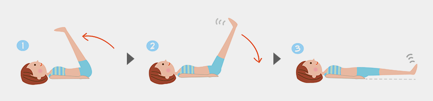 ただし、腰痛の方は両脚ではなく片方ずつで行い、反対側の脚はひざを立てて行いましょう。腰への負担を少なくできます。