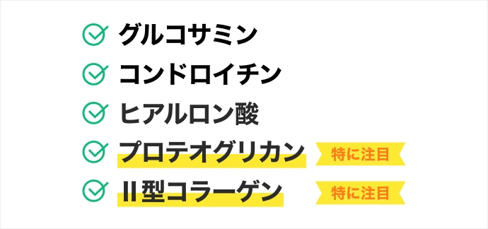 注目するべき成分は、プロテオグリカンとⅡ型コラーゲンです。