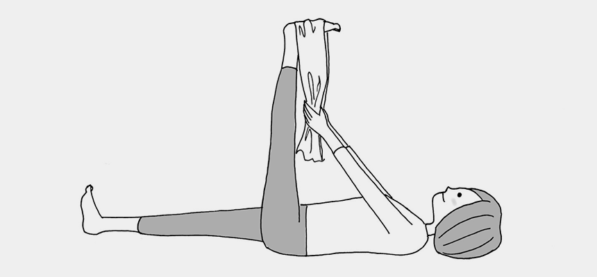 ⑤タオルを体側に引きよせながら、ゆっくりひざを伸ばします